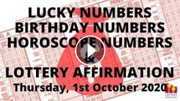 Here are the lottery lucky numbers, birthday numbers, horoscope numbers, and lottery affirmation for Thursday 1st October 2020. Subscribe to Lottery Predictor on social media to get these updates daily.