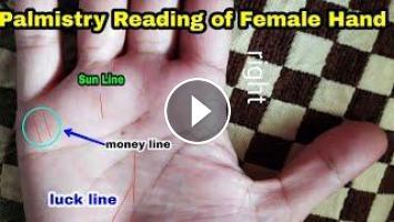 Palmistry reading of female hand #luckline #sunline #moneyline #palmistry